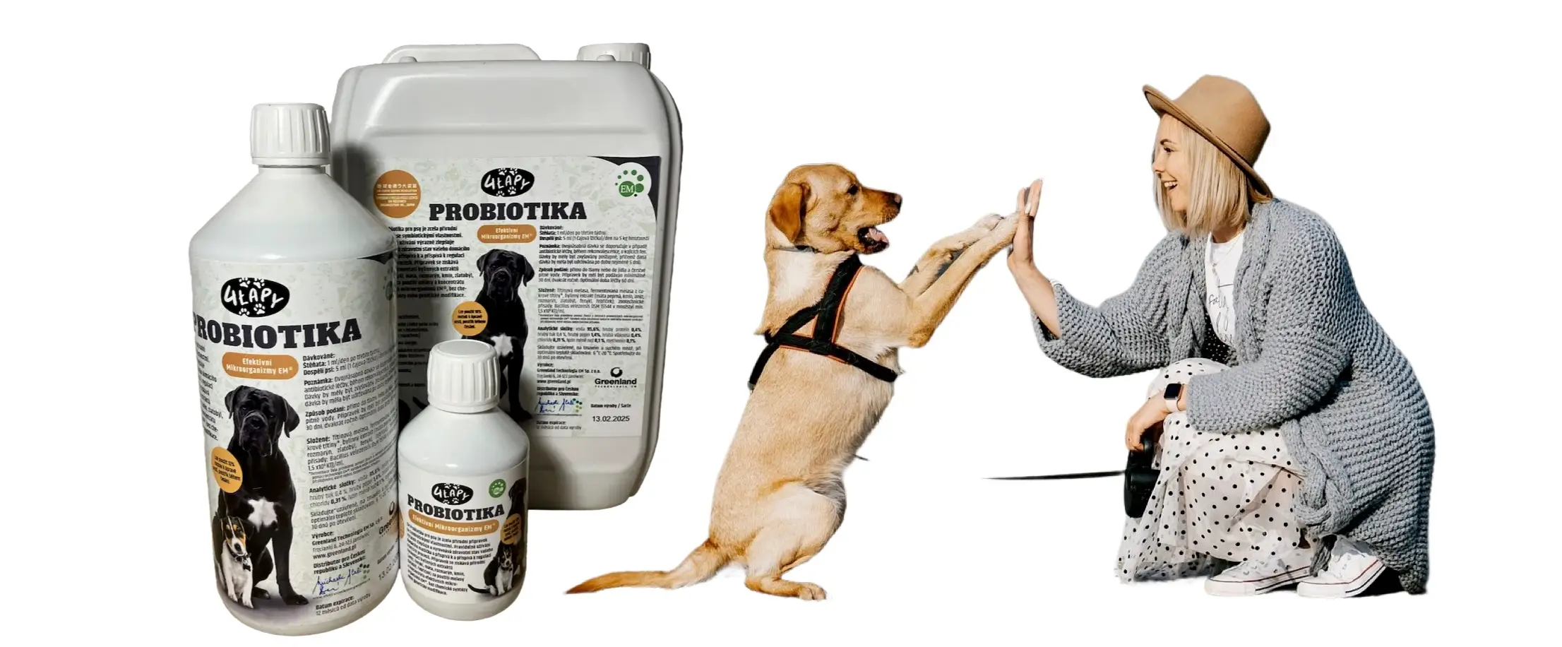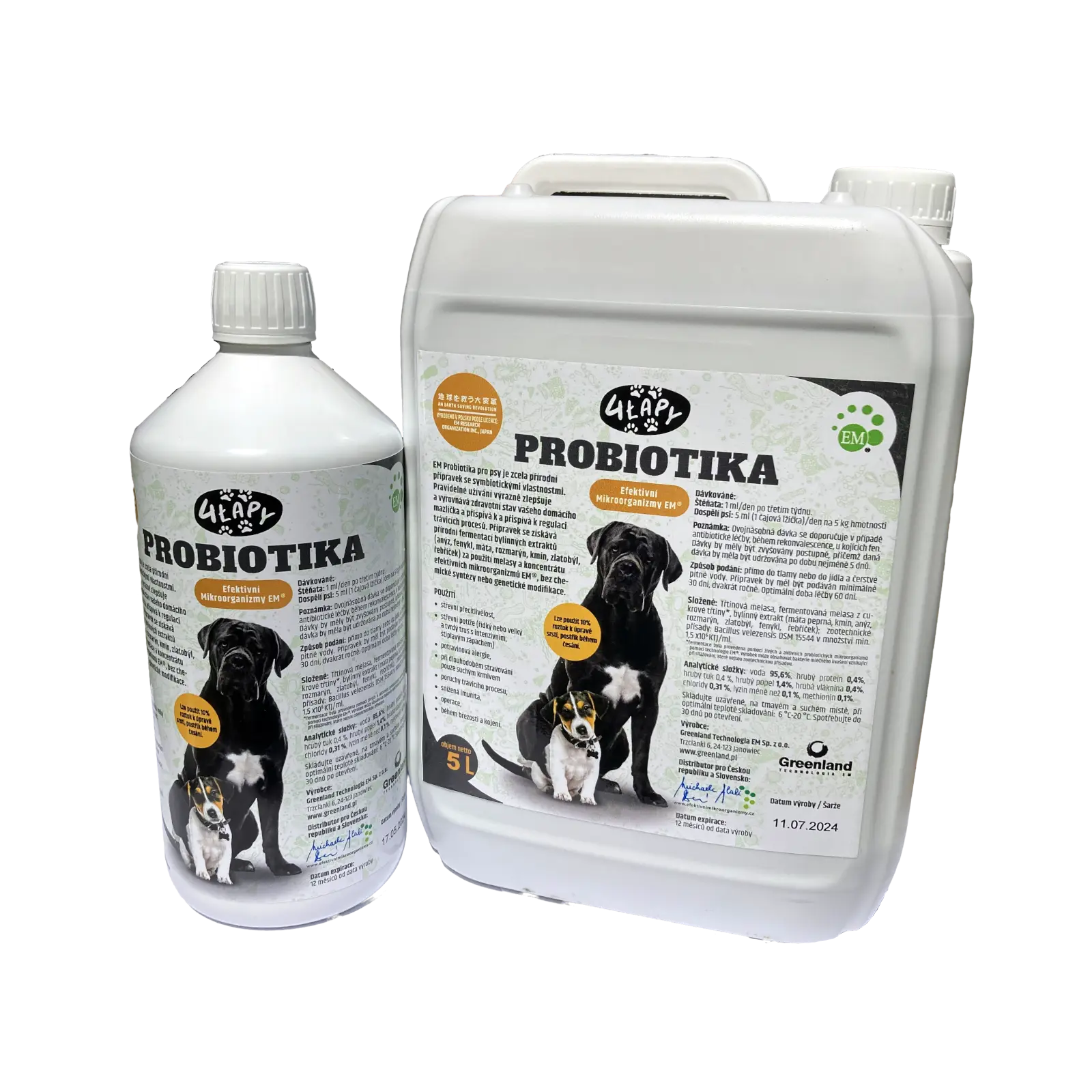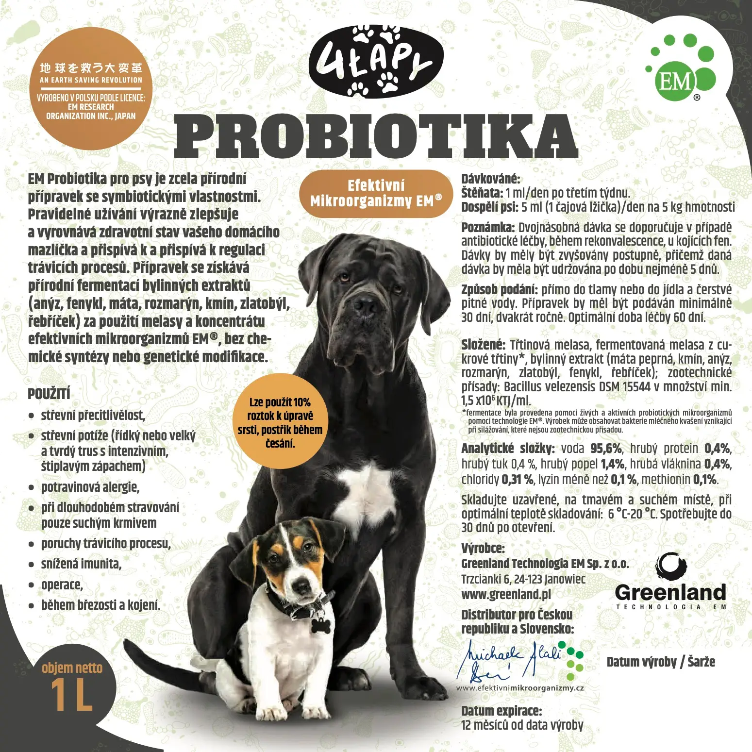 4 Lapy Probiotika pro psy je přírodní přípravek se symbiotickými vlastnostmi. Pravidelné používání výrazně zlepšuje a vyrovnává zdraví vašeho mazlíčka a pomáhá regulovat trávicí procesy. Produkt se získává přírodní fermentací bylinných extraktů (anýz, fenykl, máta, rozmarýn, kmín, zlatobýl, řebříček) za použití melasy a koncentrátu EM® bez chemické syntézy a genetické modifikace.