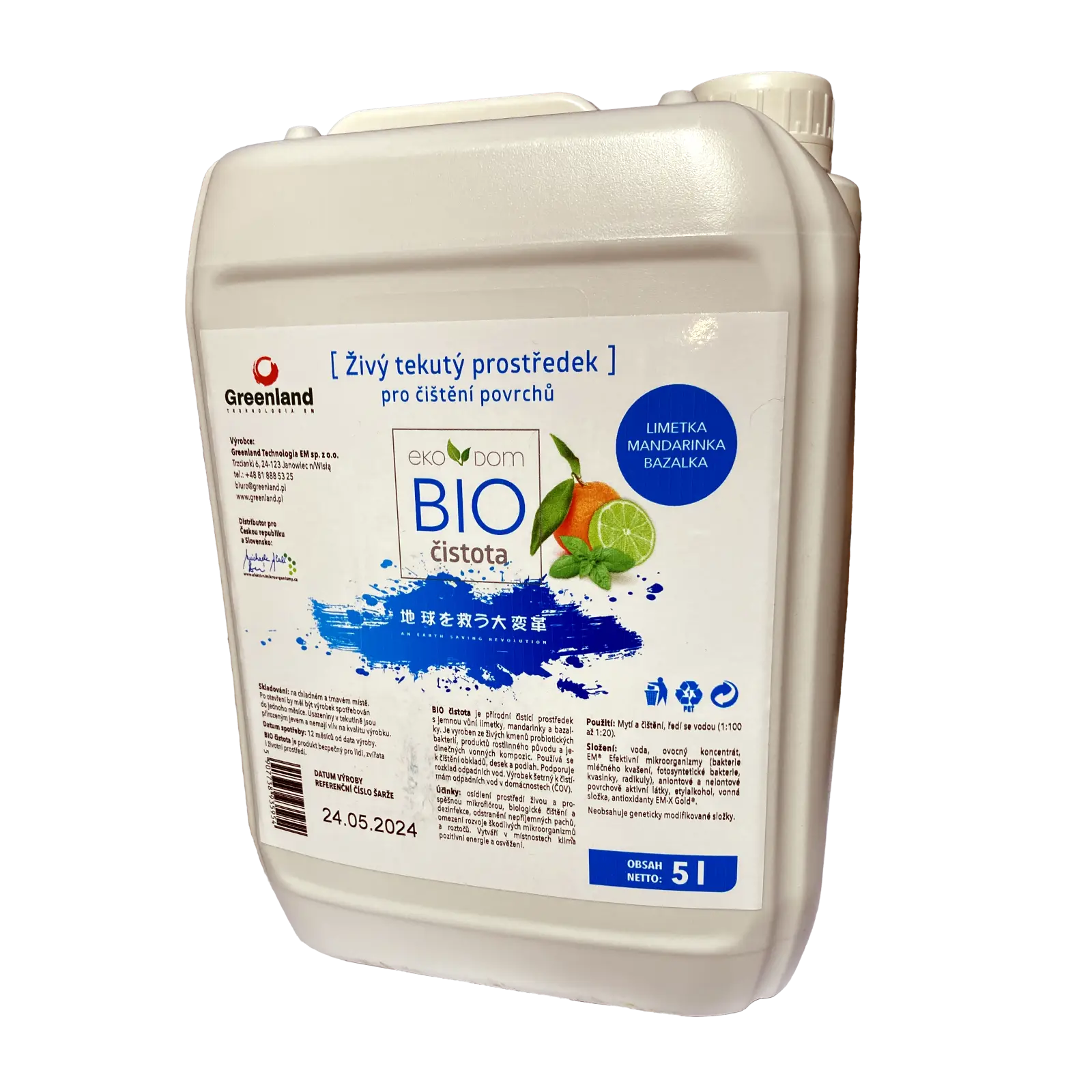 Přírodní produkty Greenland EM Technology z řady EKO DOM se vyznačují vynikajícími čistícími a osvěžujícími vlastnostmi. Zároveň nepřispívají ke znečišťování životního prostředí. Jsou ideální pro každou domácnost. Produkty jsou vyrobeny výhradně z přírodních 100% biologicky odbouratelných rostlinných složek.