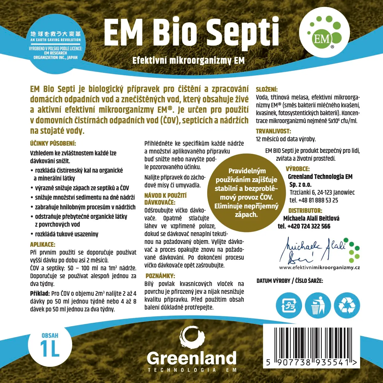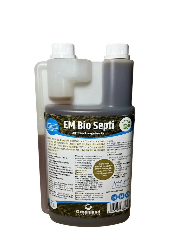 EM Bio Septi je moderní přípravek obsahující efektivní mikroorganizmy, určený k rozkladu čistírenských kalů a dalšího komunálního odpadu na bezpečný organický produkt. Přípravek je připraven k použití a nevyžaduje aktivaci. Mikroorganizmy tvořící směs byly vybrány tak, aby byly fyziologicky kompatibilní. Vytvářejí „komunitu“, která harmonicky spolupracuje na základě synergie, koexistuje a efektivně spolupracuje, což jim usnadňuje přežití v různých prostředích. Soubor enzymů, které produkují efektivní mikroorganizmy, umožňuje ekologicky šetrný rozklad organické hmoty. Efektivní mikroorganizmy účinně extrahují mikroelementy zachycené v minerálech a současně je přeměňují do forem, které rostliny snadno vstřebávají.