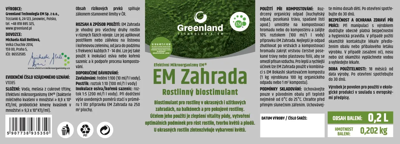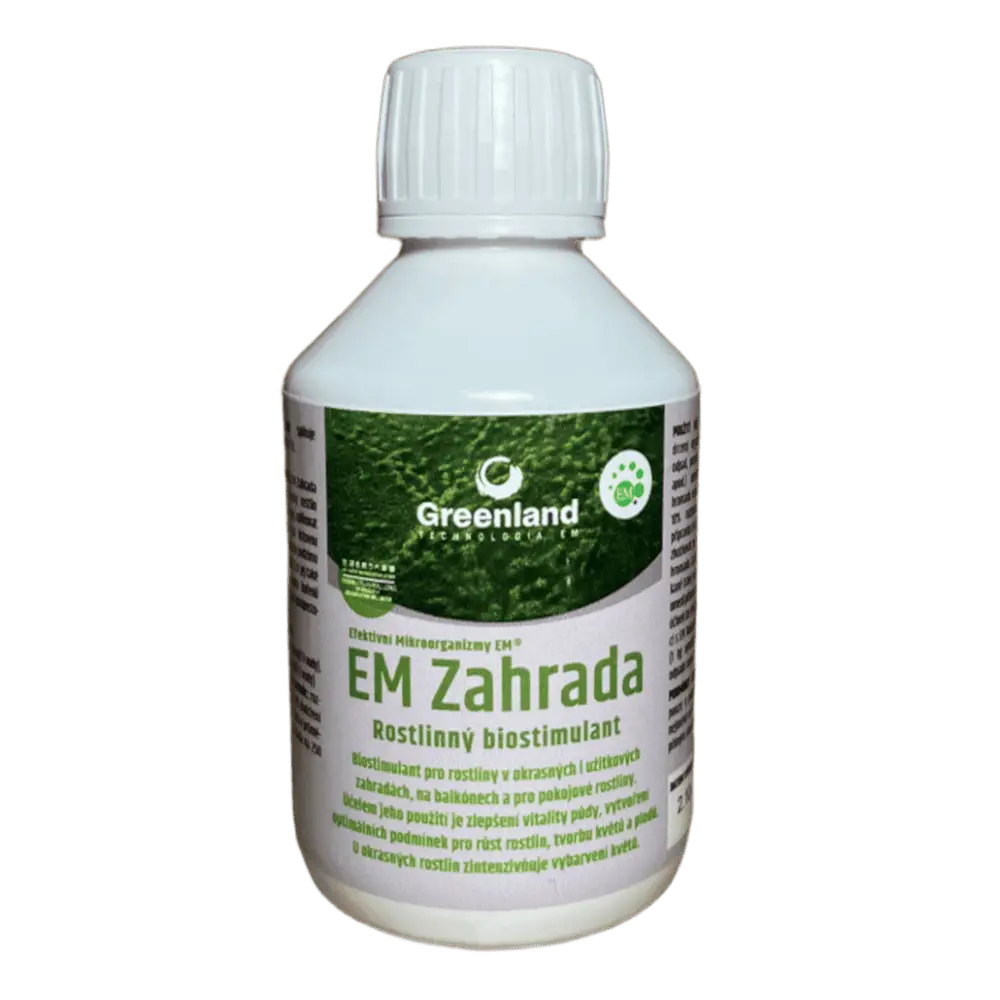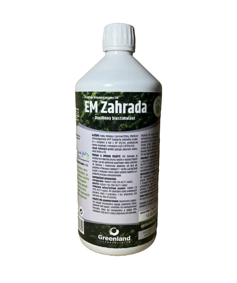 EM Zahrada je rostlinný biostimulant pro péči o zahradu obsahující soubor EM® a jejich sekundárních metabolitů, které zajišťují harmonický růst rostlin ve zdravém prostředí.